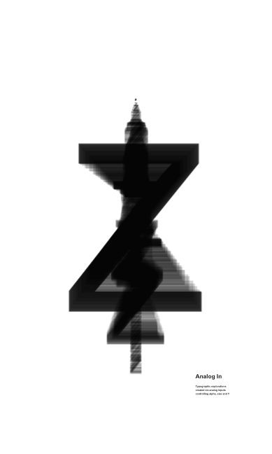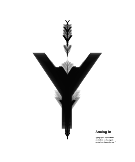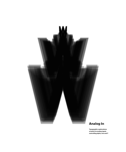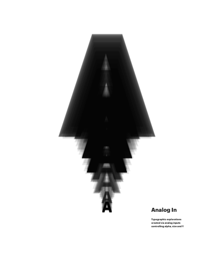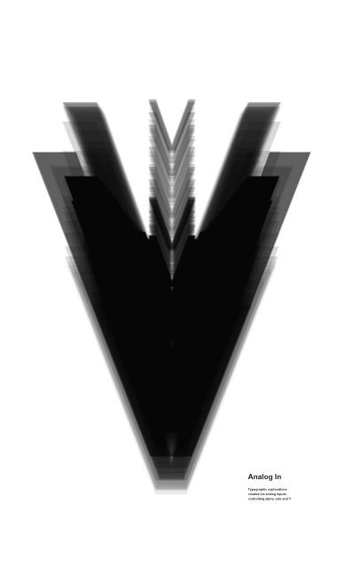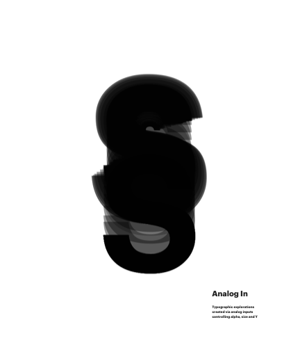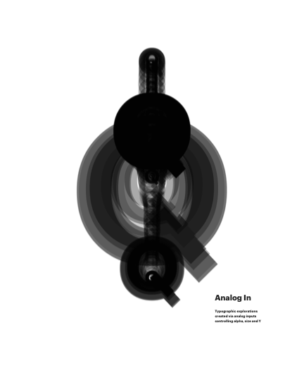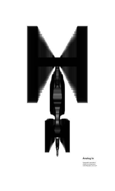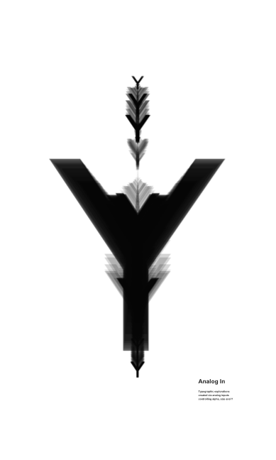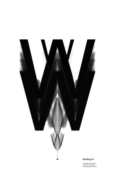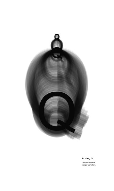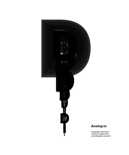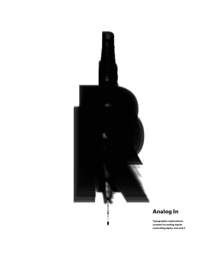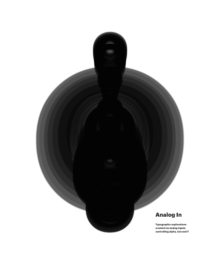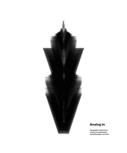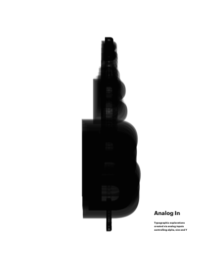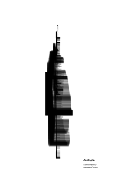 Typographic explorations created via analog inputs controling alpha, size and Y