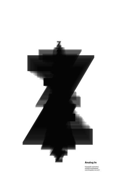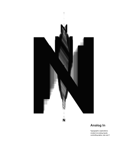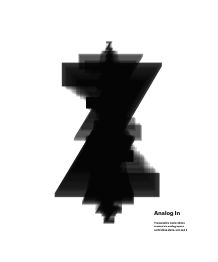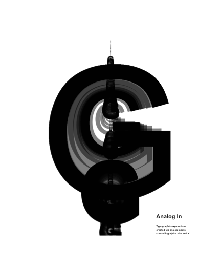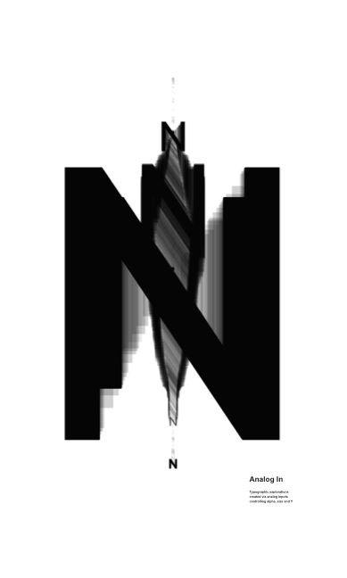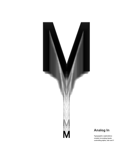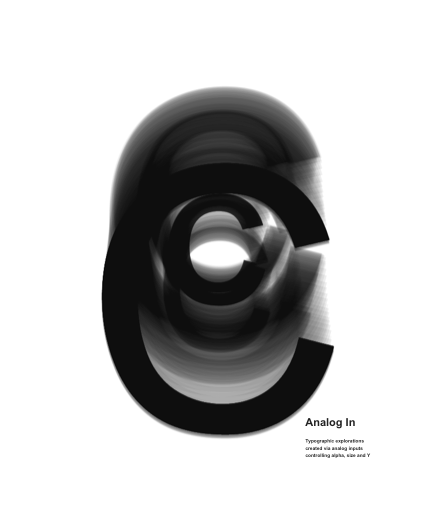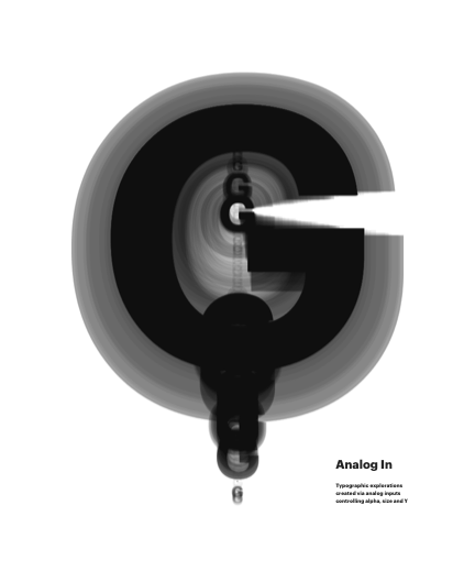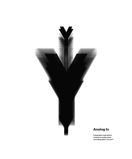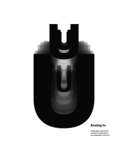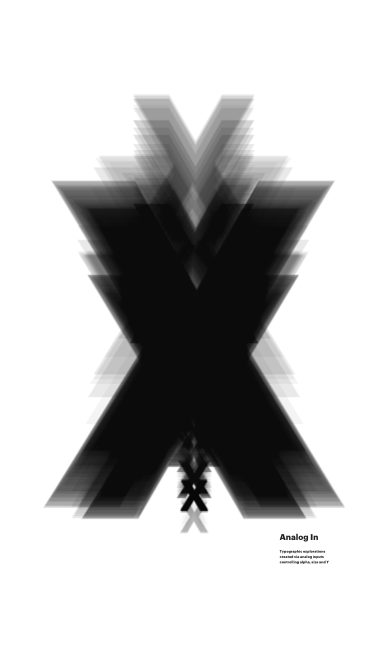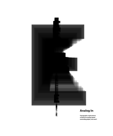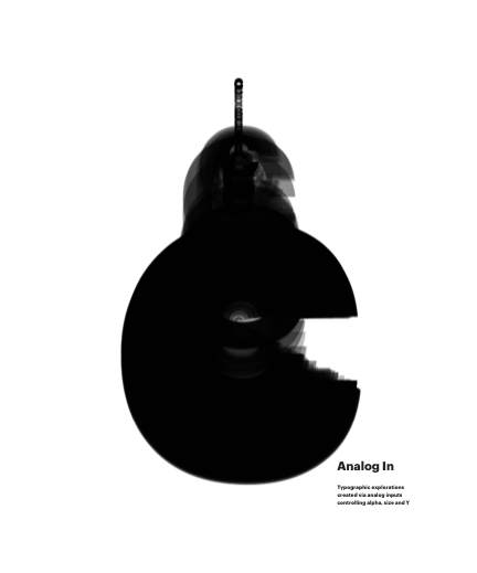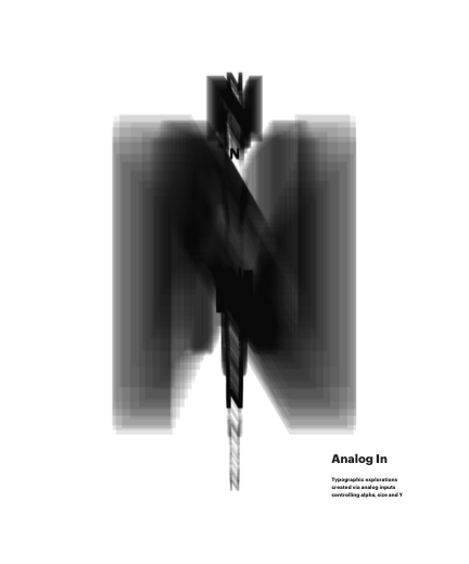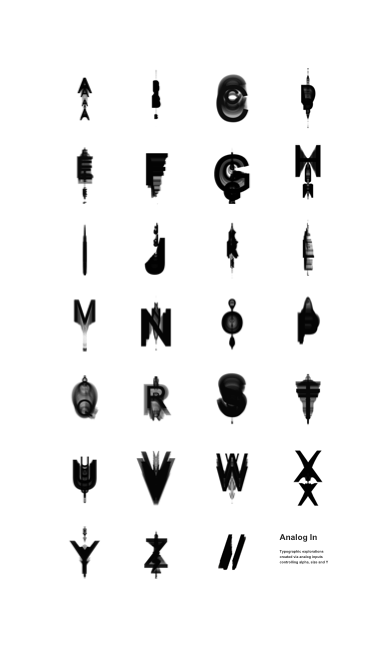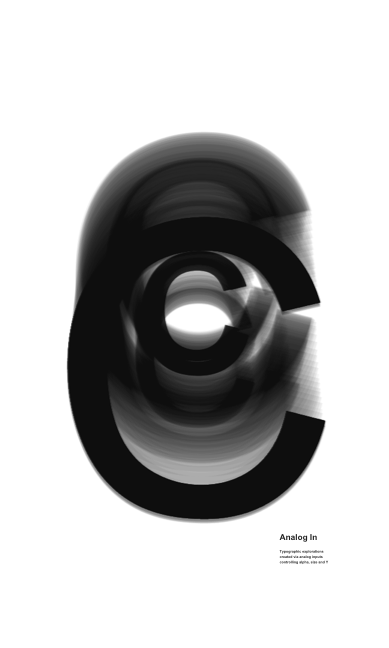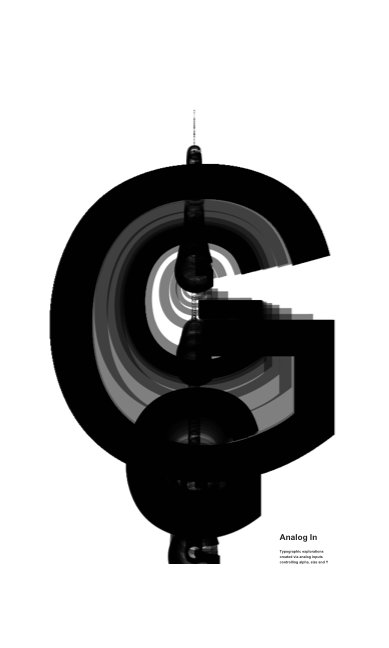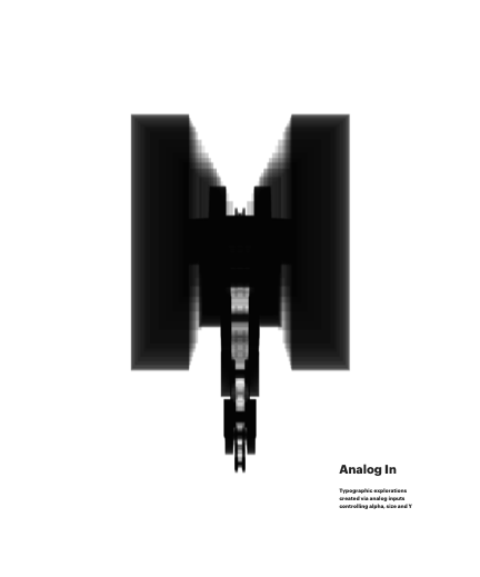 Typographic explorations created via analog inputs controling alpha, size and Y